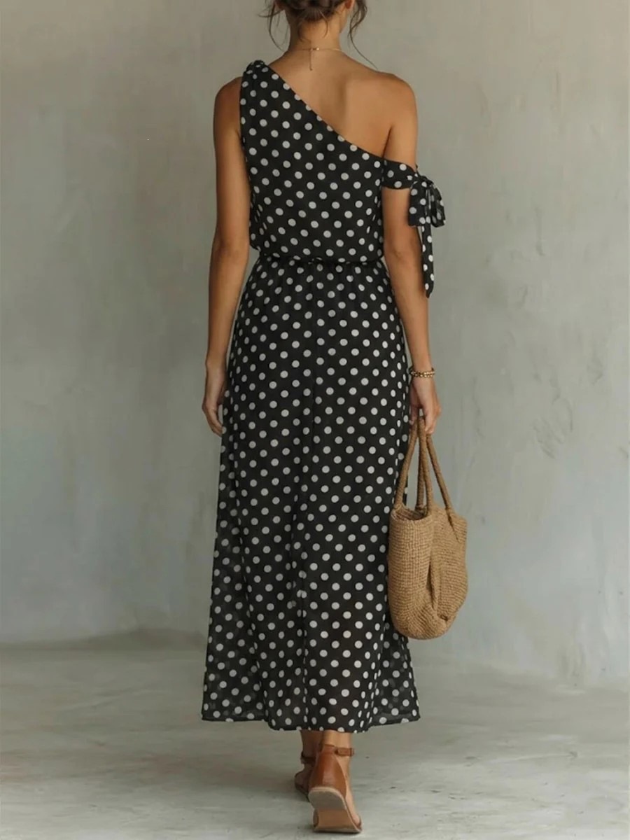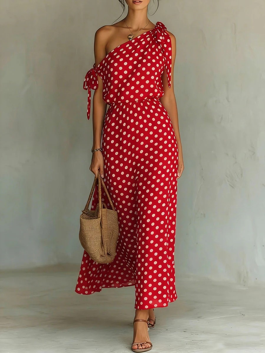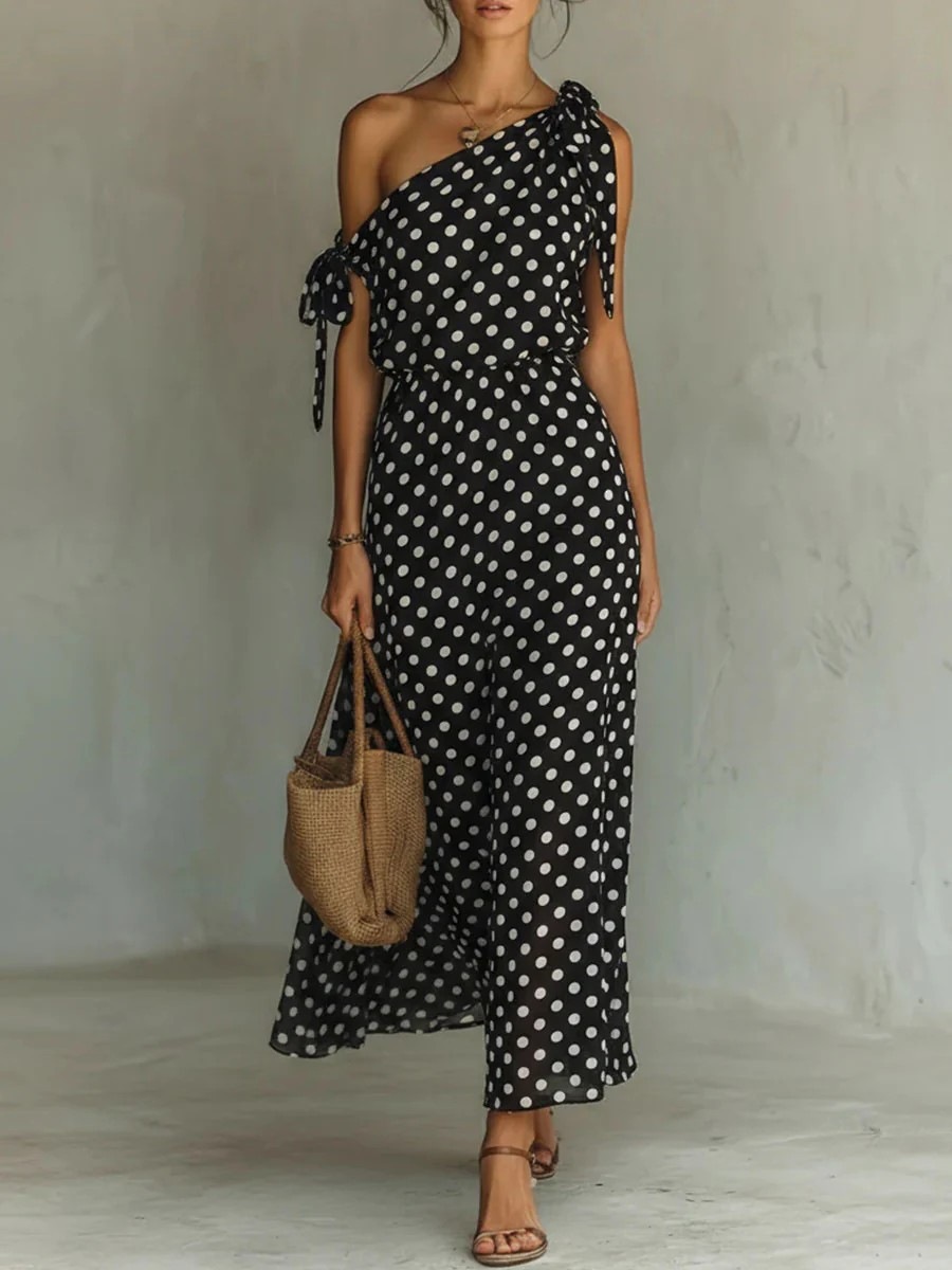 Polka-dot Off-shoulder One-shoulder Womens Dress