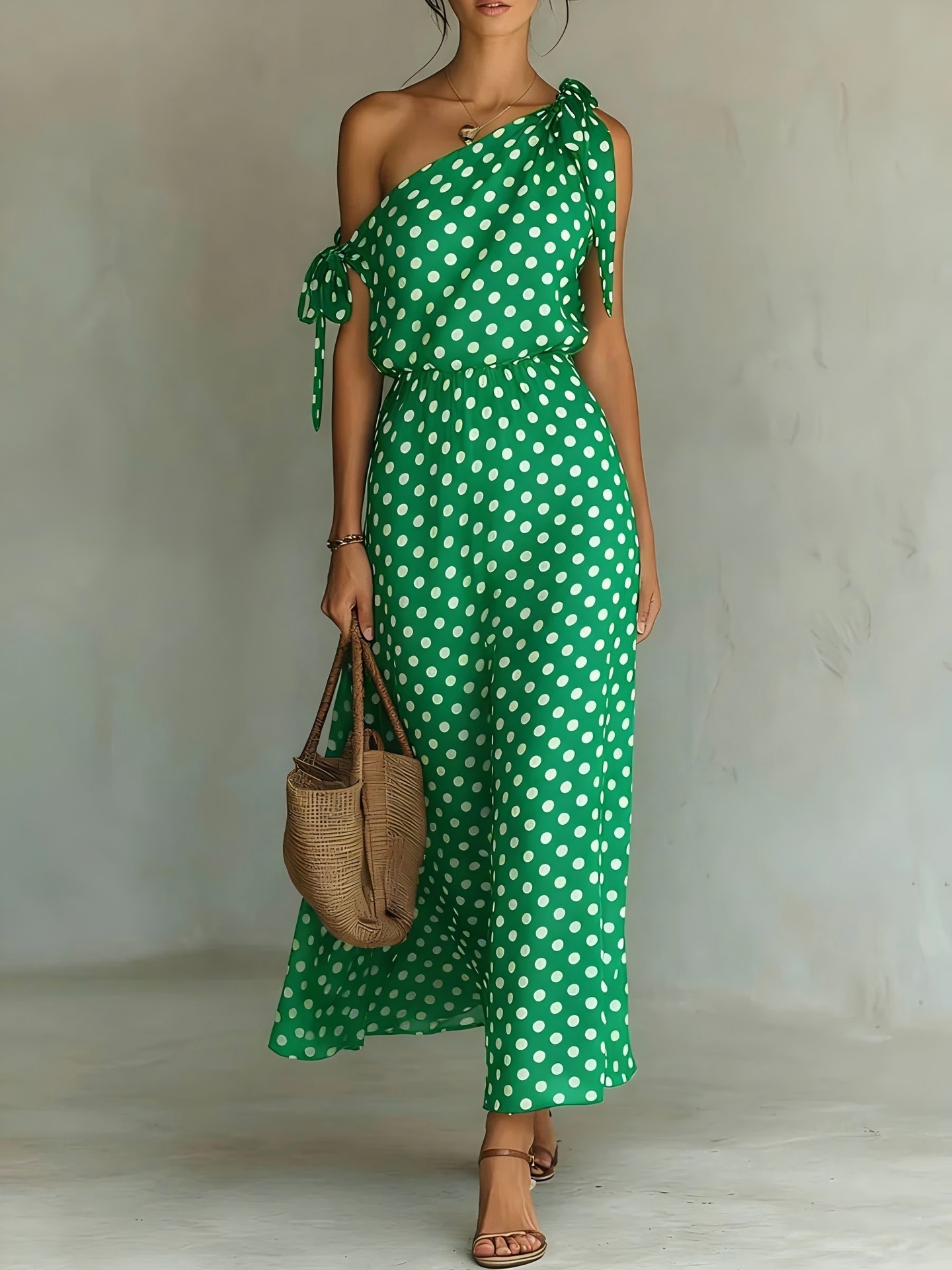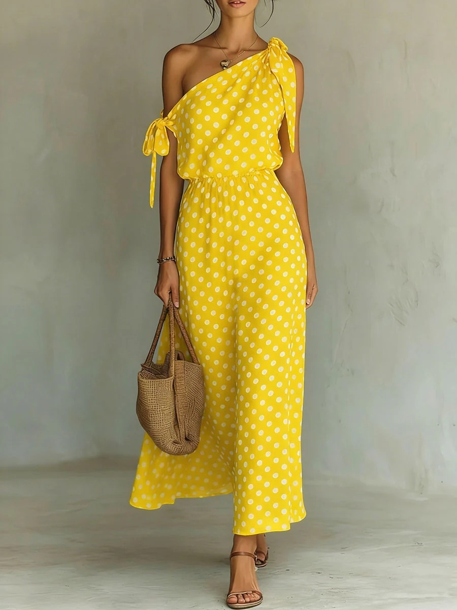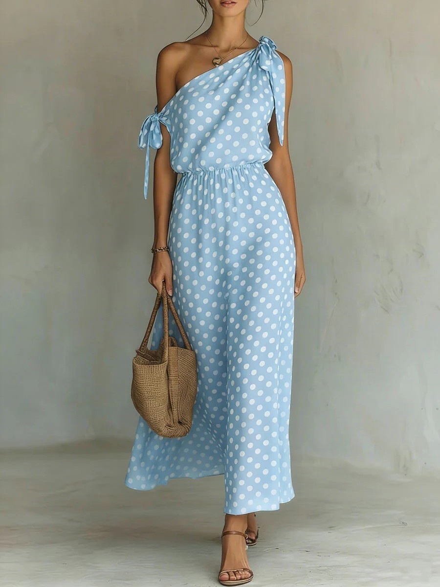 Polka-dot Off-shoulder One-shoulder Womens Dress