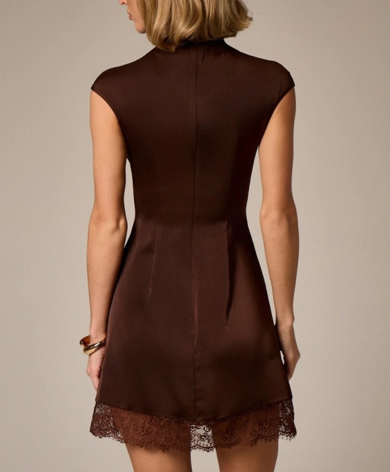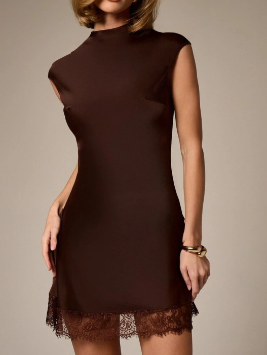 Features: High waist, slim fit, accentuates the waistline, lace trim, solid color, mini length, sleeveless